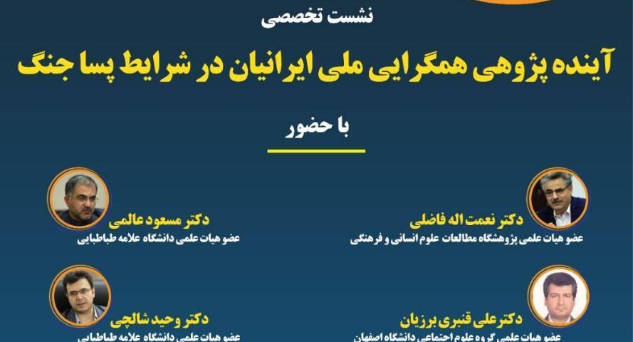 🔻آیندهپژوهی همگرایی ملی ایرانیان در شرایط پساجنگ 🔹۲۹ مرداد ۱۴۰۴، نشست آنلاین انجمن جامعه شناسی ایران 🔹حجم فایل: ۱۶٫۲MB، زمان: ۷۰ دقیقه